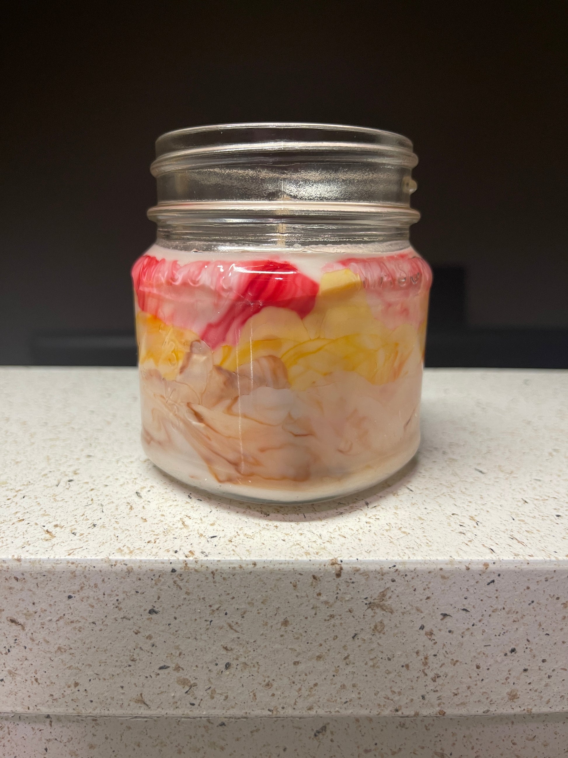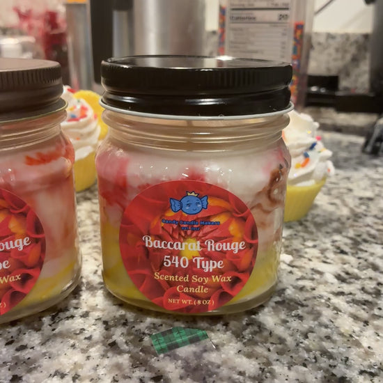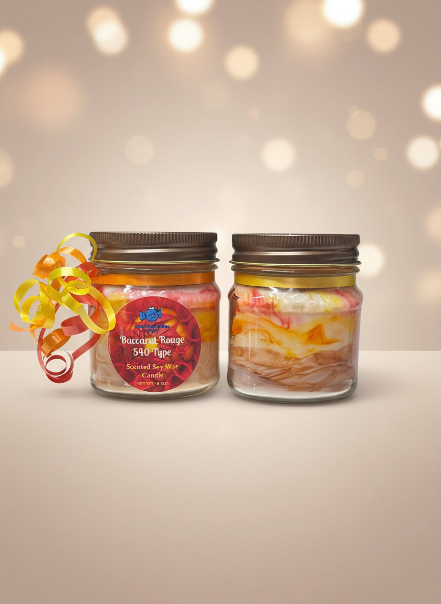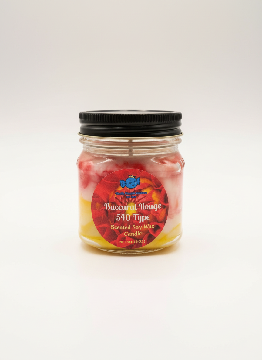 Indulge in luxury with our Marble Baccarat Rouge 540 Type Candle, hand-poured into a classic 8 oz mason jar. Each candle is designed with a unique marble swirl of vibrant colors, making every piece one-of-a-kind.