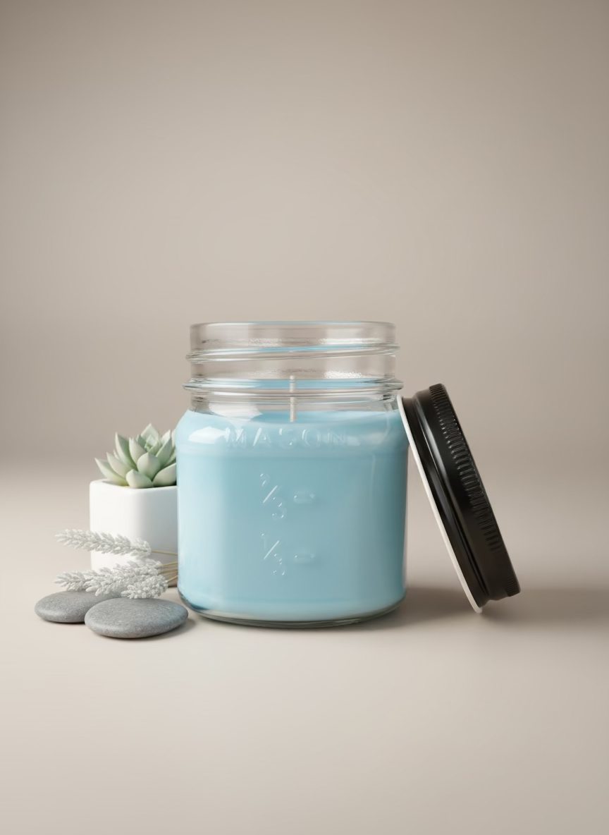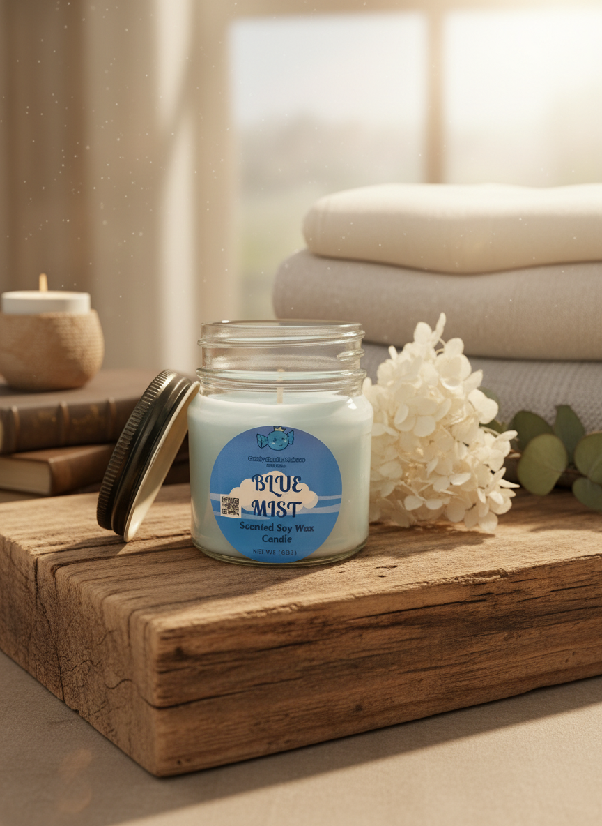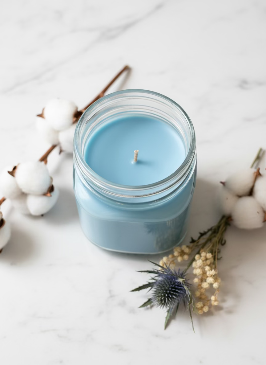 Blue Mist is a soft, baby-blue candle that brings a clean, bright freshness to any room. It opens with uplifting notes of lemon, bergamot, and orange, giving that crisp, airy feel. Gentle floral tones of rose, cyclamen, and carnation add a smooth, elegant heart. Finally, tonka, musk, and fresh airy accords settle into a warm, comforting laundry-day clean finish.